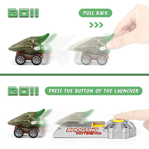 【Pull Back Dinosaur Cars】There comes with 3 pack pull back monster cars, just pull back, and then release your hand letting it go.Your little ones can also play them with launcher or cool detachable track,which is very attractive to the children.