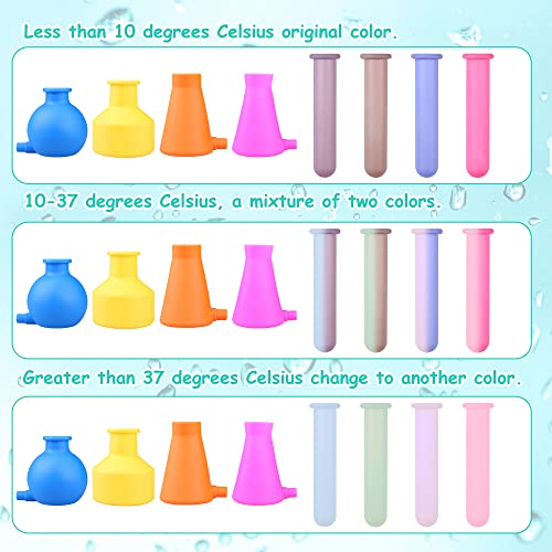🛀【Kids Bath Toys Set】 Science lab bath toy set can sense the change of water temperature flexibly, color changing when temperature greater than 37℃/98.6℉. The above process can well stimulate children’s curiosity and novelty, make them more expectant for bath, and also create closer interaction with their parents.