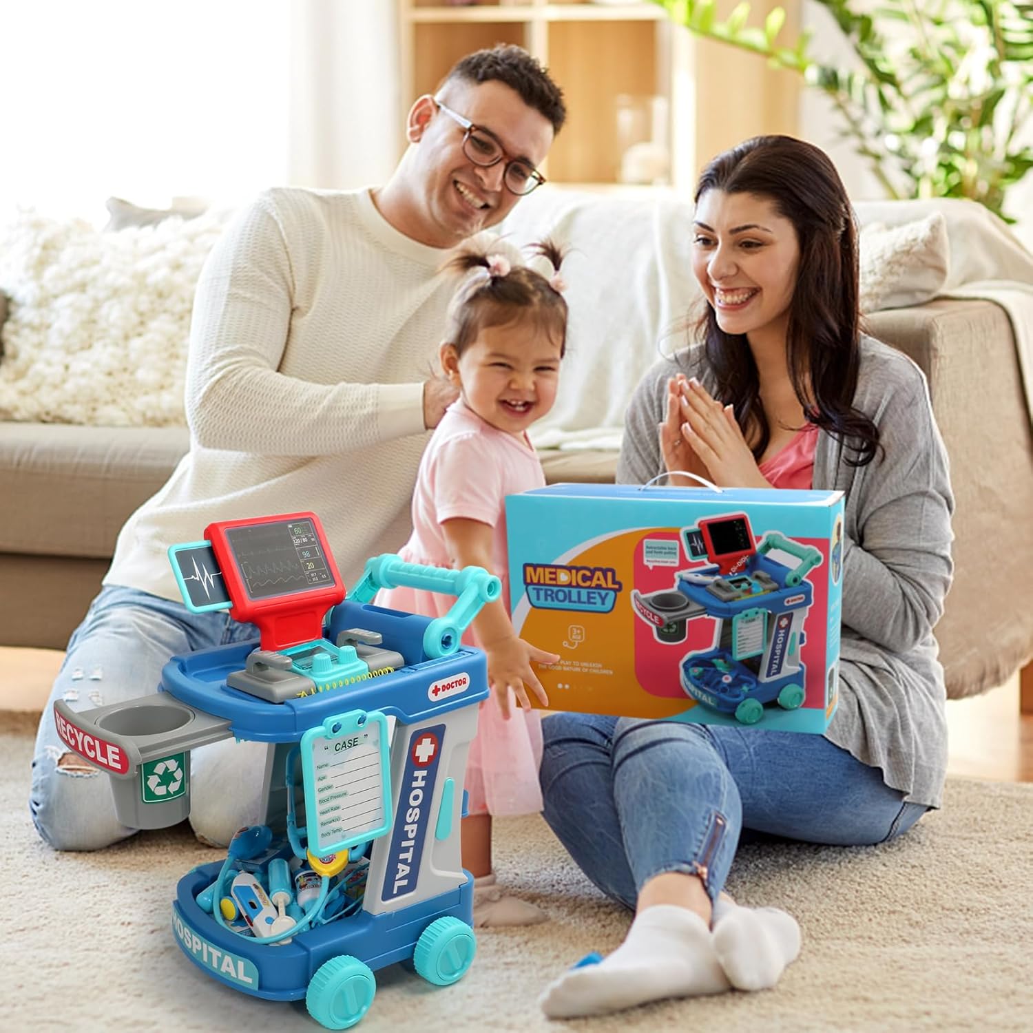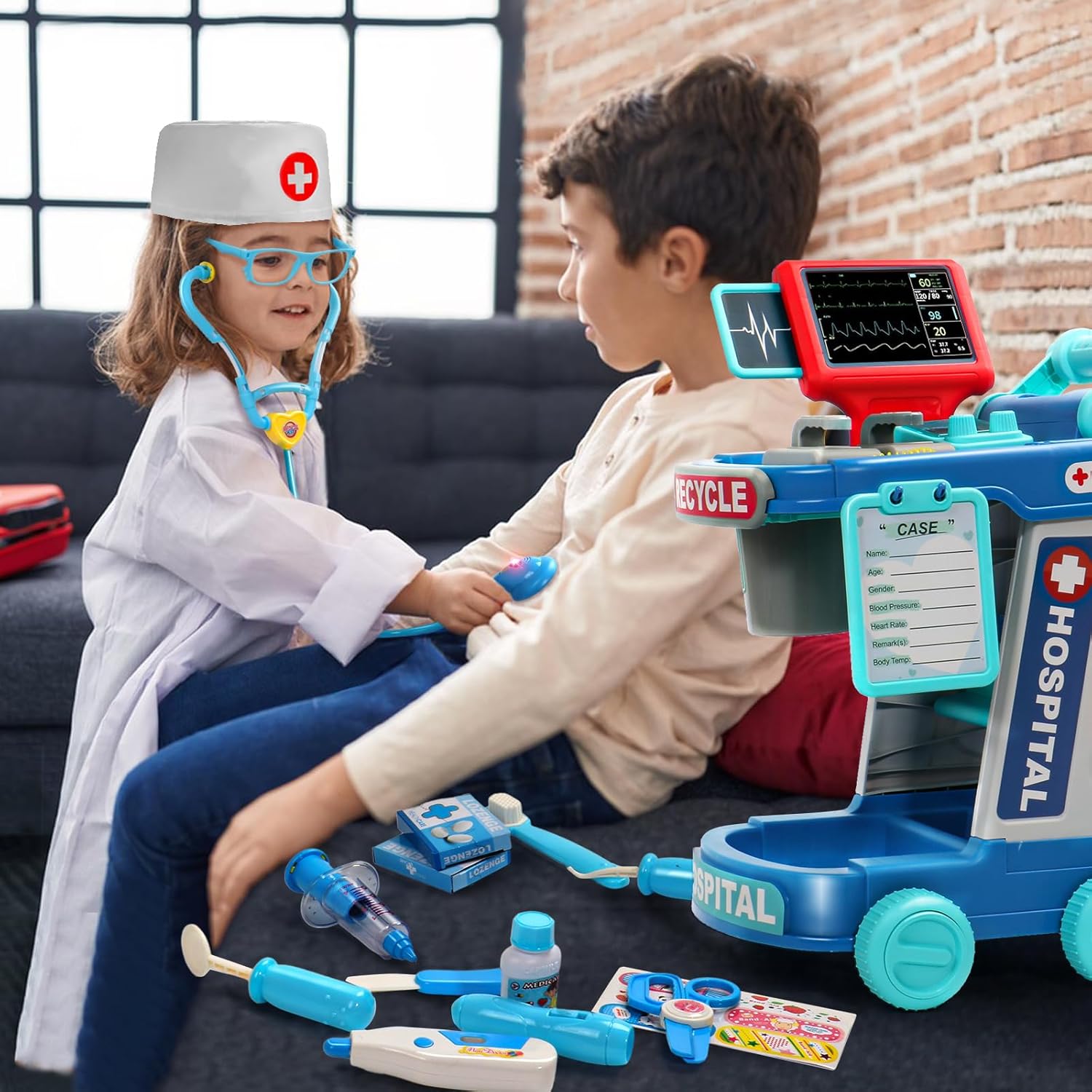 3 years old kids can examine and treat patients with upgraded EKGs and defibrillators for a more realistic medical experience!