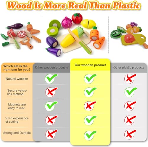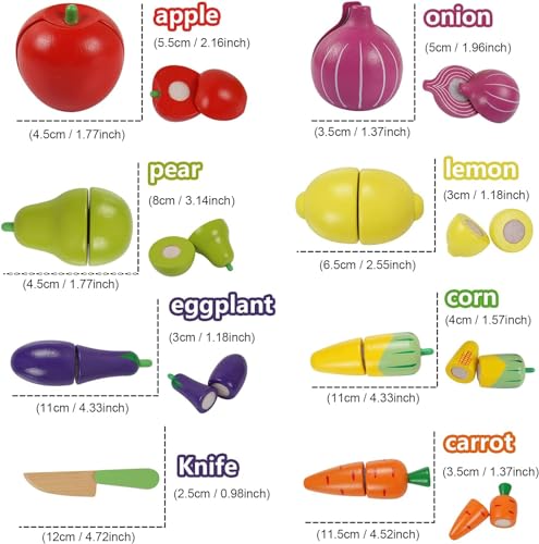 Funny learning toy: This beautiful wooden toy encourages role-playing and helps develop fine motor skills, inspiring practical, imaginative thinking and also introduces the concept of a healthy diet. It is the perfect size for little hands, so children can carefully and accurately cut them with a wooden knife. Also a great way to learn more about safety in the kitchen.