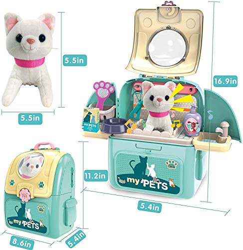 Gifts2U Cat Vet Toys for Kids,Doctor Role Play Set Educate Girl Take Care Pet,Cat Can Singing Backpack Toys for 3 4 5 6 Years Old Children