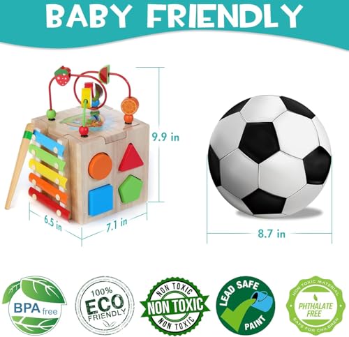 Specification: HELLOWOOD Wooden Activity Cube Baby Toys, 8-in-1 Montessori Educational Toy Set, Bead Maze Shape Sorter Abacus Xylophone Words & Clock Learning, STEM Toys for Boys Girls Toddlers Age 18 Months and up