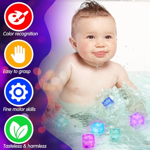 Jiosdo Kids Light Up Toys Sensory Toys, 12PCS Led Light Up Bath Toys For Toddlers, Kids Sensory Toys, Liquid Sensor Bath Lights For Kids, Sensory Bath Toys For Children, Light Up Ice Cubes For Bath