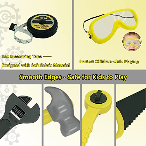 Robust & Child Friendly Builders Tools Ensure Kids Safe Play: This tool kit for kids is made of sturdy and safe plastic without rough edges. All little kids building toys are of good size and easy to use for the little hands. The yellow builder costume and adjustable child tool belt is suitable for 3 4 5 6 year old boys. Just enjoy your little one following you round helping with all the house repairs.