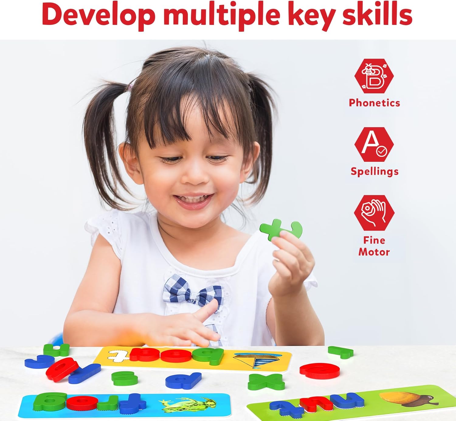 TEACHES: Letter-Sound Recognition, Reading Fluency, Spelling Consonant-Vowel-Consonant Words, Blend Words & Digraph Words.