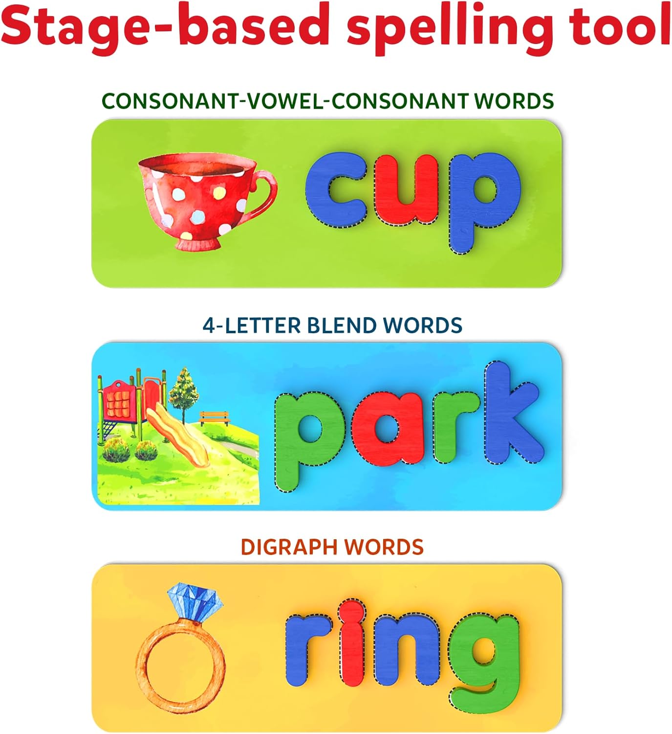EDUCATIONAL & ENGAGING: Children will learn to spell 60 words with color-coded boards & wooden letters, all while having fun!