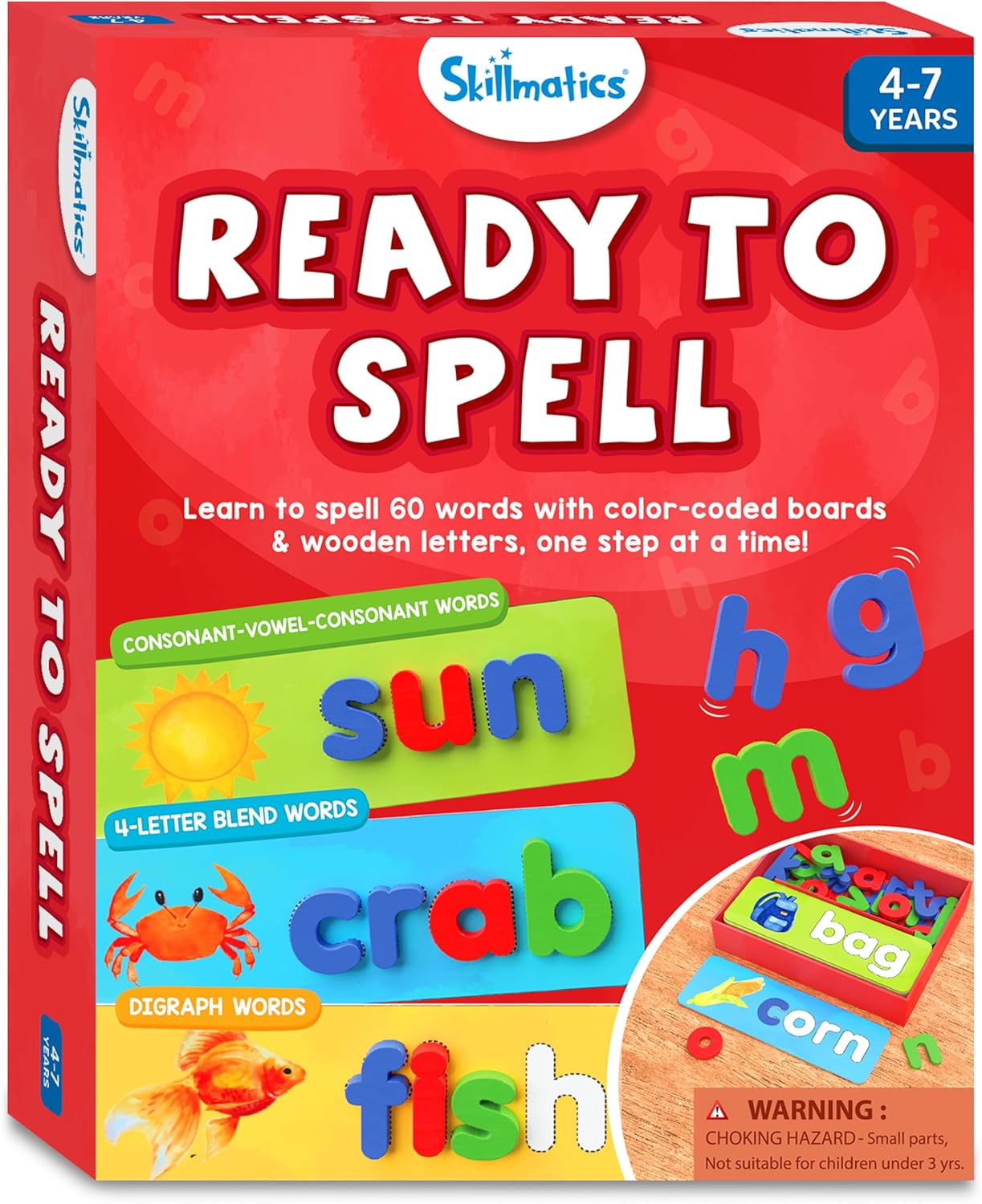 LEARNING TOY FOR AGES 4 TO 7: Ready to Spell helps your child learn to spell, one step at a time! With color-coded boards, your child will progressively learn to spell Consonant-Vowel-Consonant Words, 4-Letter Blend Words, and Digraph Words.