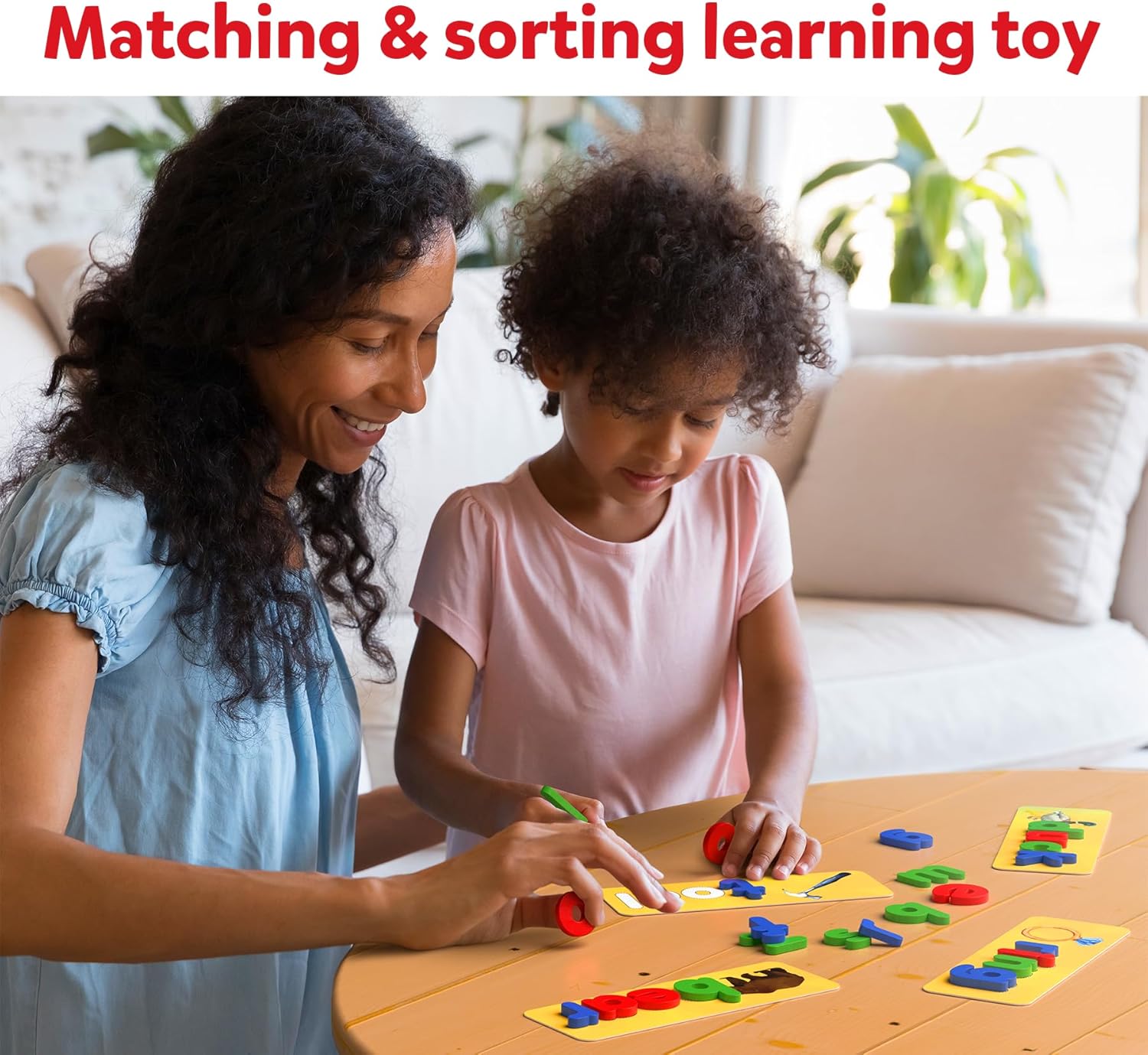 The wooden letters are designed for small hands making it easy for children to sort & match independently.