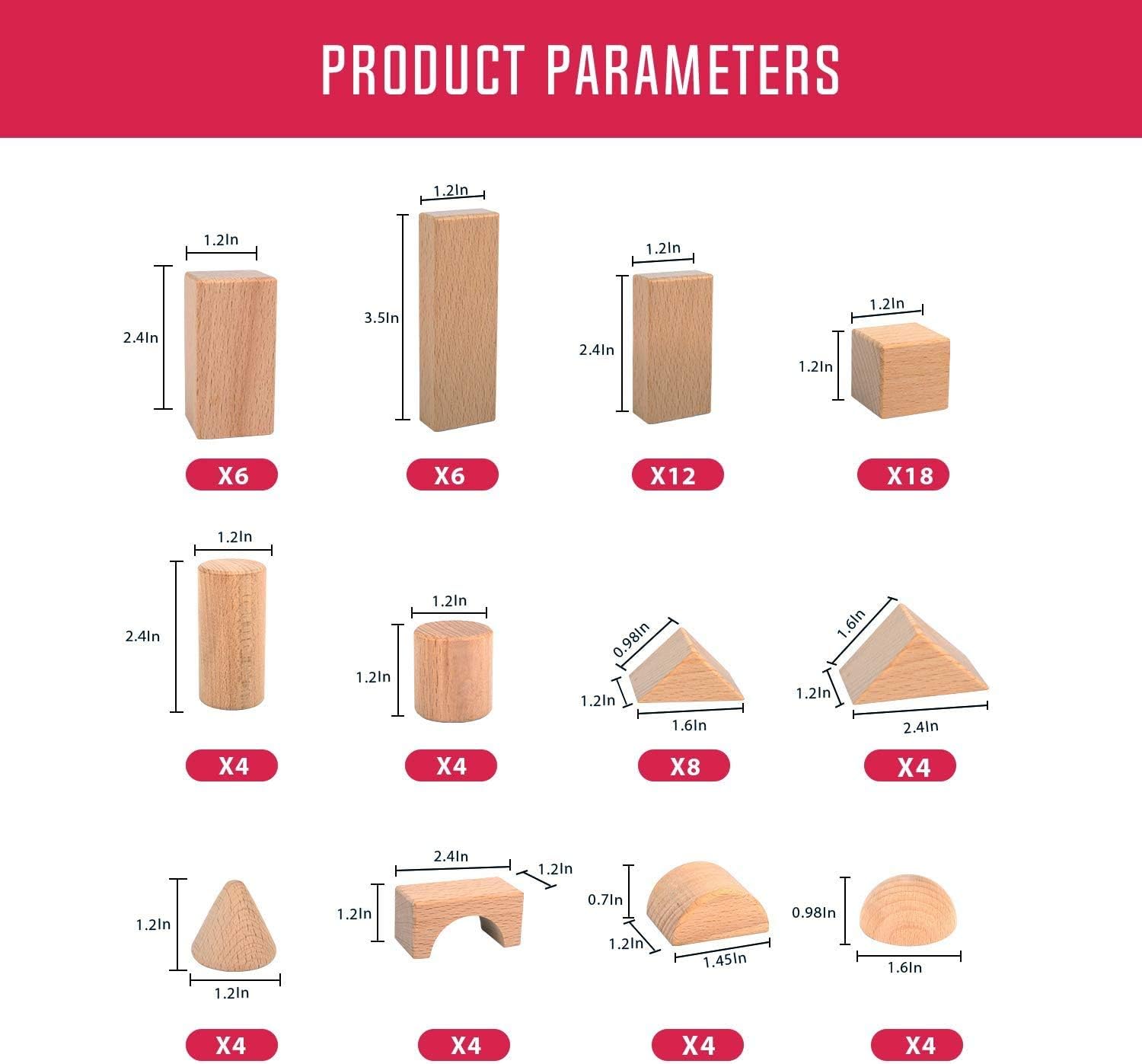 Wooden building block set-80 peice that gives toddlers unlimited possibilities,for building,balancing,stacking and all kinds of hands-on early learning! It contains 80 wooden blocks. Let the building block set be a bridge to communicate with toddlers,use our own actions to set an example for toddlers,discover the strengths and weaknesses of them in time, give encouragement, criticism and guidance.Mother’s preferred toy block gift for 2 year old girls and boys